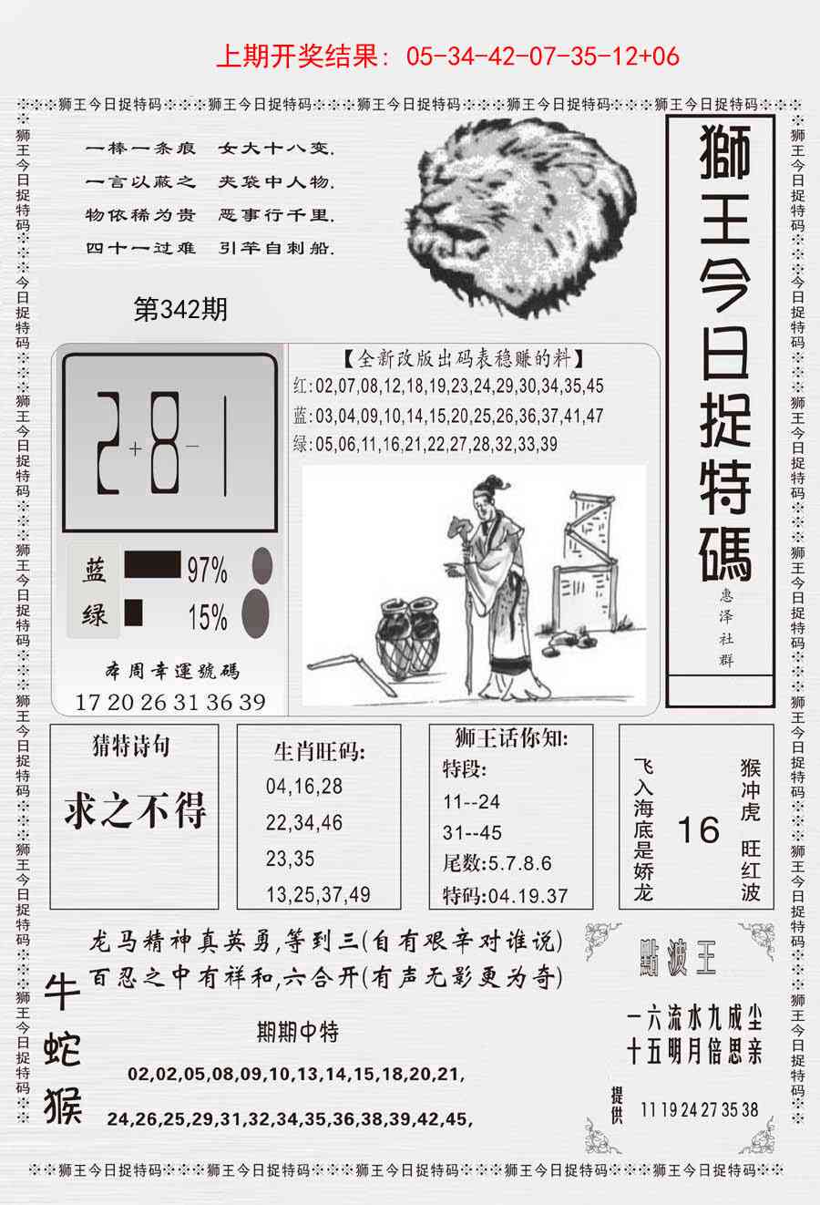 342期狮王今日抓特码[图]